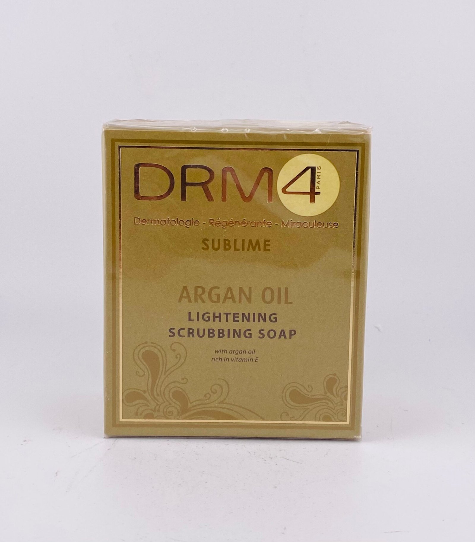 DRM4 Sublime Argan Oil Lightening Scrubbing Soap gently exfoliates, brightens skin, and nourishes with argan oil for a smooth, radiant, and refreshed complexion.