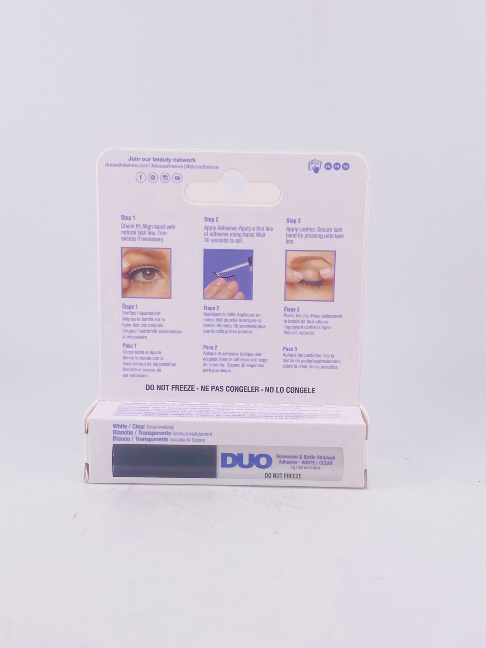 Secure your lashes effortlessly with DUO Rosewater & Biotin StripLash Adhesive – White/Clear. This premium adhesive features a gentle formula infused with rosewater and biotin, ensuring strong, long-lasting hold without irritation. Suitable for all skin types, it dries quickly and remains flexible, keeping strip lashes in place all day. Ideal for DIY enthusiasts and professional makeup artists, this white-to-clear adhesive provides smudge-proof, natural-looking results for any occasion.