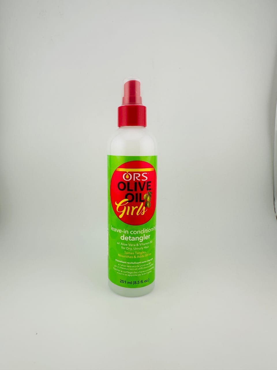 ORS Olive Oil Girls Leave-In Detangler Spray.A lightweight detangling spray that softens, moisturizes, and eases combing. Enriched with olive oil, it helps reduce breakage, tame frizz, and leave hair smooth, manageable, and healthy-looking.