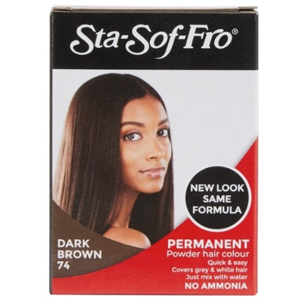 Sta-Sof-Fro Permanent Powder Hair Colour Dark Brown 74 provides rich, long-lasting dark brown colour with excellent grey coverage. Easy water-activated formula with no ammonia.